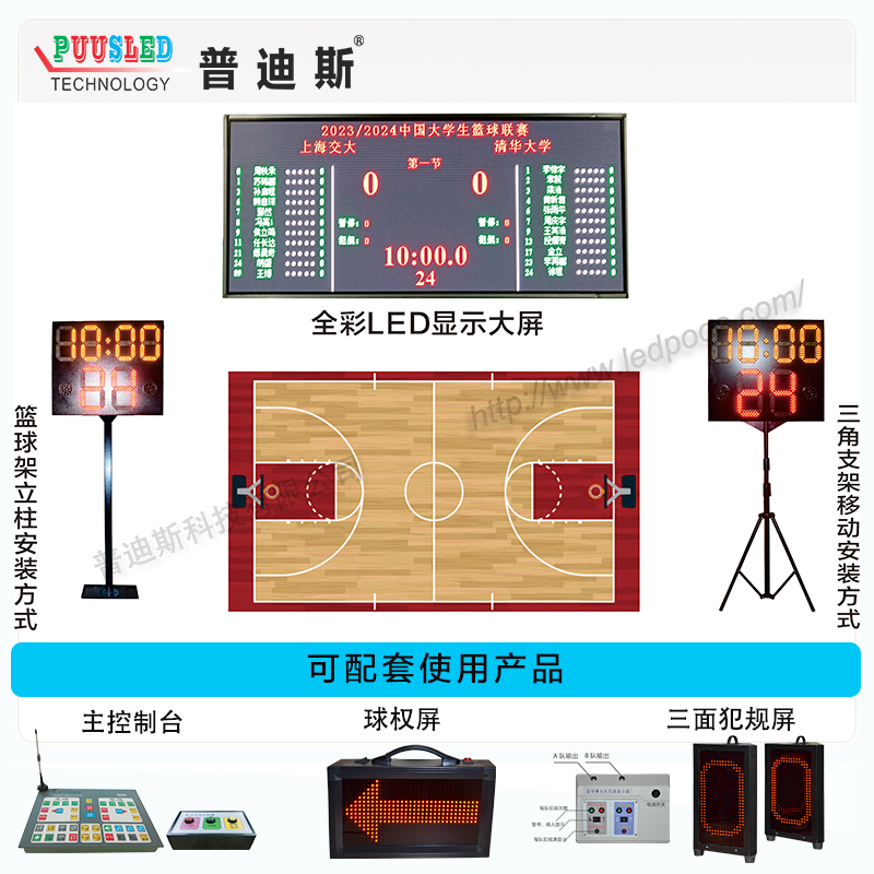 篮球记分显示屏 同步记分系统 多功能全彩比分显示屏
